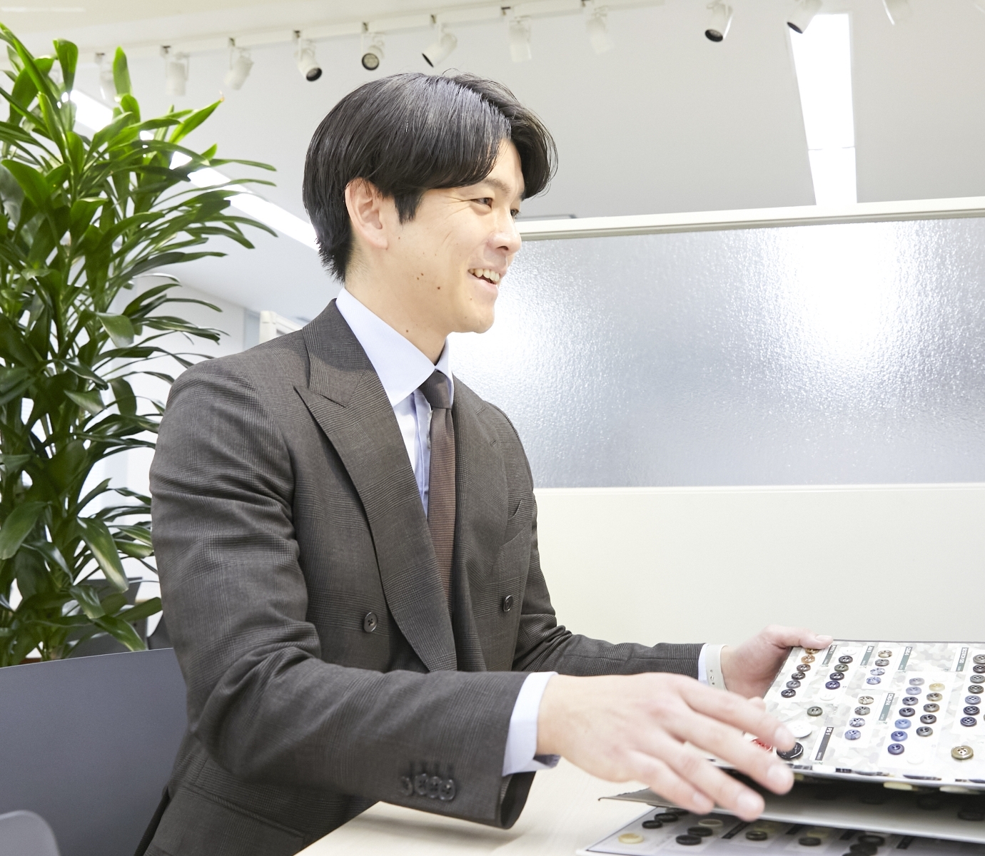 百貨店様を通して化粧品、建設、航空、飲食など多種多様なエンドユーザー様からユニフォームのご相談をいただきます。お客様のニーズをしっかりと汲み取り、デザインを検討し、それを体現できる生地・付属品についてデザイナーやMD(企画)と相談しながらご提案を行なっています。